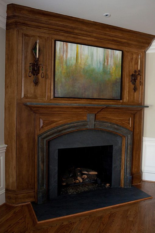 The After – The artwork includes the faux bois and stone on the fireplace as well as the custom painting