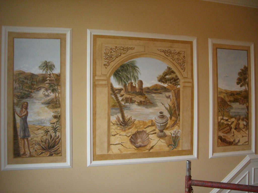 Lisa Tureson. A talented artist who not only posses the ability to create stunning pieces of her own but also has the capabilities to turn your problem into no problem at all. She is what I like to call, “Art Smart.” Lisa has been working with home owners and designers for years to create stunning pieces like these 3 panels in a set of 6 panels that depict the client’s family. The Mother is on the right and two of the kids are on the left. It was placed in a two story foyer and when the clients moved they were able to remove the panels and take them to their new house!