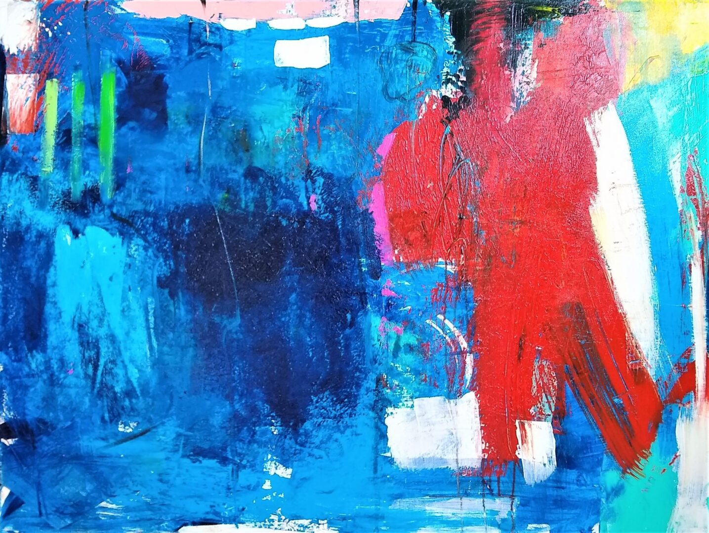 Buck Nelligan’s abstract pieces are about as American as you can get with a vibrant red, white, and blue palette spattered throughout much of his work. Below are just a few of his works that display these all-American hues