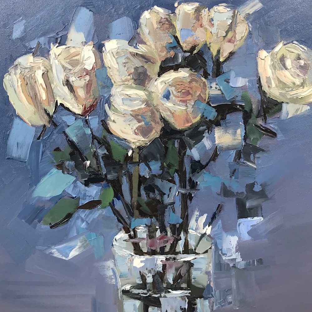 Amber Favre, “White Roses”, 20″ X 20″, Oil On Canvas