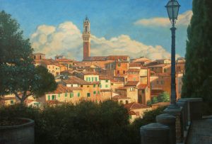 Bradley Stevens – Approach to Siena, 30×44, Oil on Linen